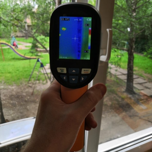 С помощью бытовых или профессиональных приборов с инфракрасной матрицей высокого разрешения указанные недостатки быстро обнаруживаются, а значит предстоит работа для строителей-ремонтников. Одна бригада обошьет наружные стены здания пенопластом, другая поставит металлопластиковые окна, третья заделает отверстия из-за осадки строительных конструкций и выпавших кусков кирпича и бетона.