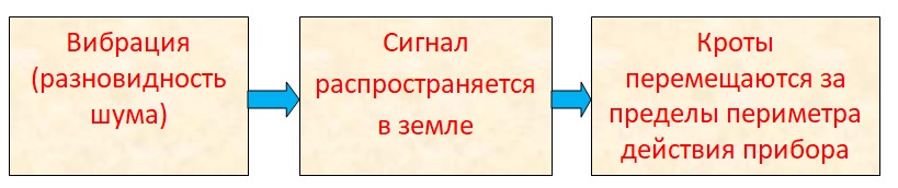 Вибрация это низкочастотный гул - вот он то и выживает кротов... А теперь - героев в студию !