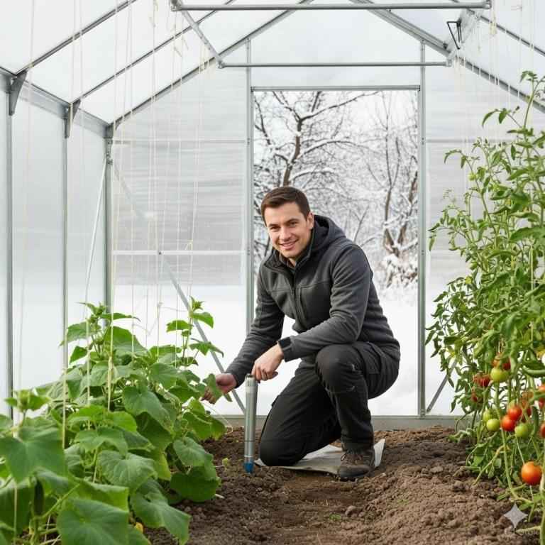 Как и летом, для гуманной борьбы с кротом по принципу - поставил и забыл, подойдет вибро-отпугиватель. Отличий от установки в открытом грунте практически нет.