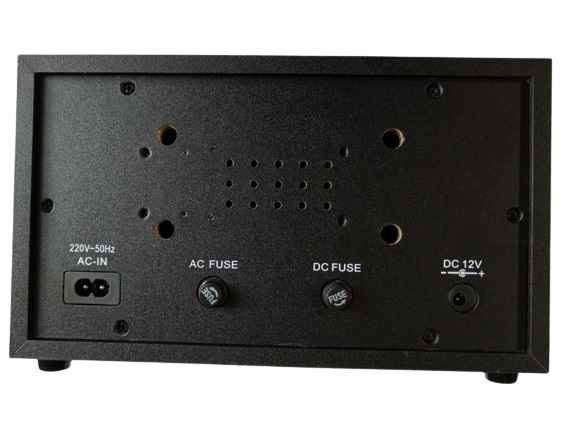 - Может питаться как от сети 220 В, так и от аккумулятора (блока питания 12 В).