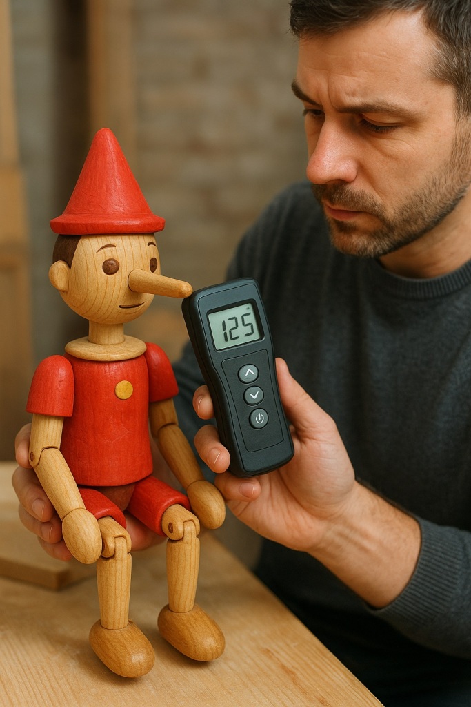 Приходилось слышать разные версии - и сосна и осина. А наши приборы меряют десятки пород ! Но чтобы деревянный малыш не рассохся, надо же было измерять его влажность ! Если его тыкать игольчатым влагомером, он будет плакать, как от уколов при прививках, а вот бесконтактного никаких следов не останется.